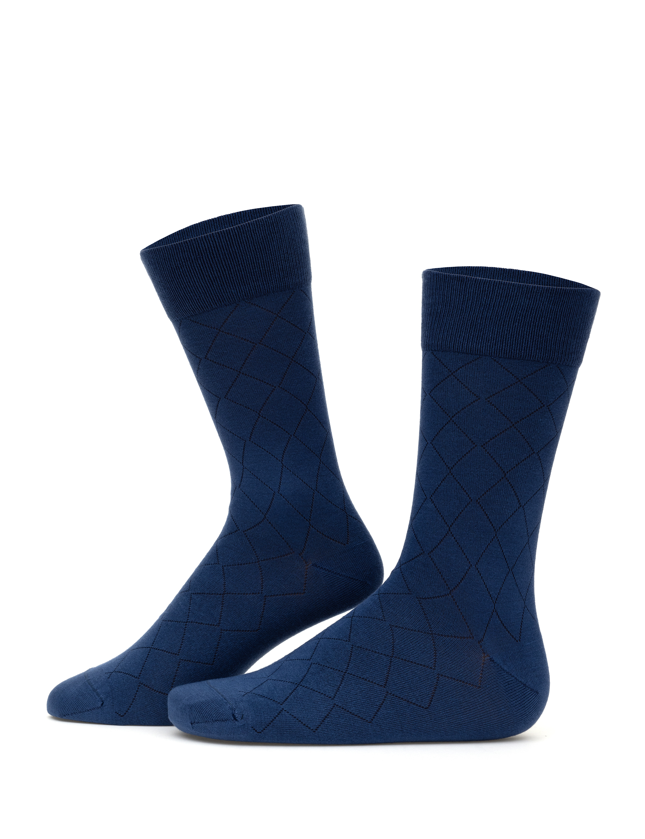 Erkek Bambu Karışımlı Mavi Soket Desenli Çorap