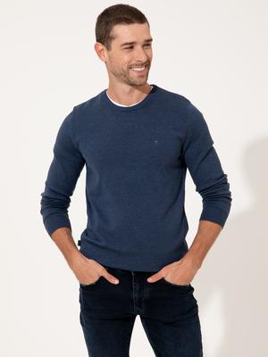 İndigo Melanj Slim Fit Bisiklet Yaka Basic Triko Kazak