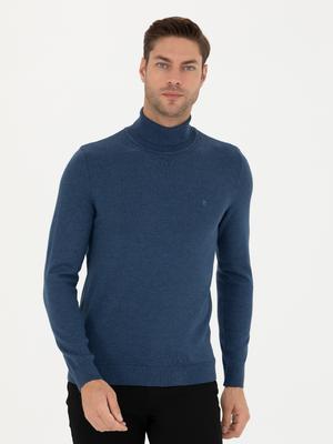 İndigo Melanj Slim Fit Balıkçı Yaka Basic Triko Kazak