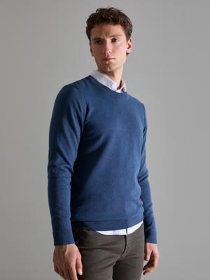 İndigo Melanj Slim Fit Bisiklet Yaka Basic Triko Kazak