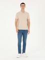 Model, 188 cm boyunda, 80 kg ağırlığında olup 99 cm göğüs, 76 cm bel ve 96 cm basen ölçülerine sahiptir. Üzerinde 31 beden pantolon bulunmaktadır. Slim fit kesim, modelin vücut hatlarını zarif bir şekilde ortaya çıkarırken, elastik yapısı sayesinde rahat bir uyum sağlar. Vücuda tam oturmasına rağmen hareket kısıtlaması yaratmayan esnek bir yapıya sahiptir, bu nedenle farklı vücut tiplerine sahip erkekler için ideal bir tercih olur.