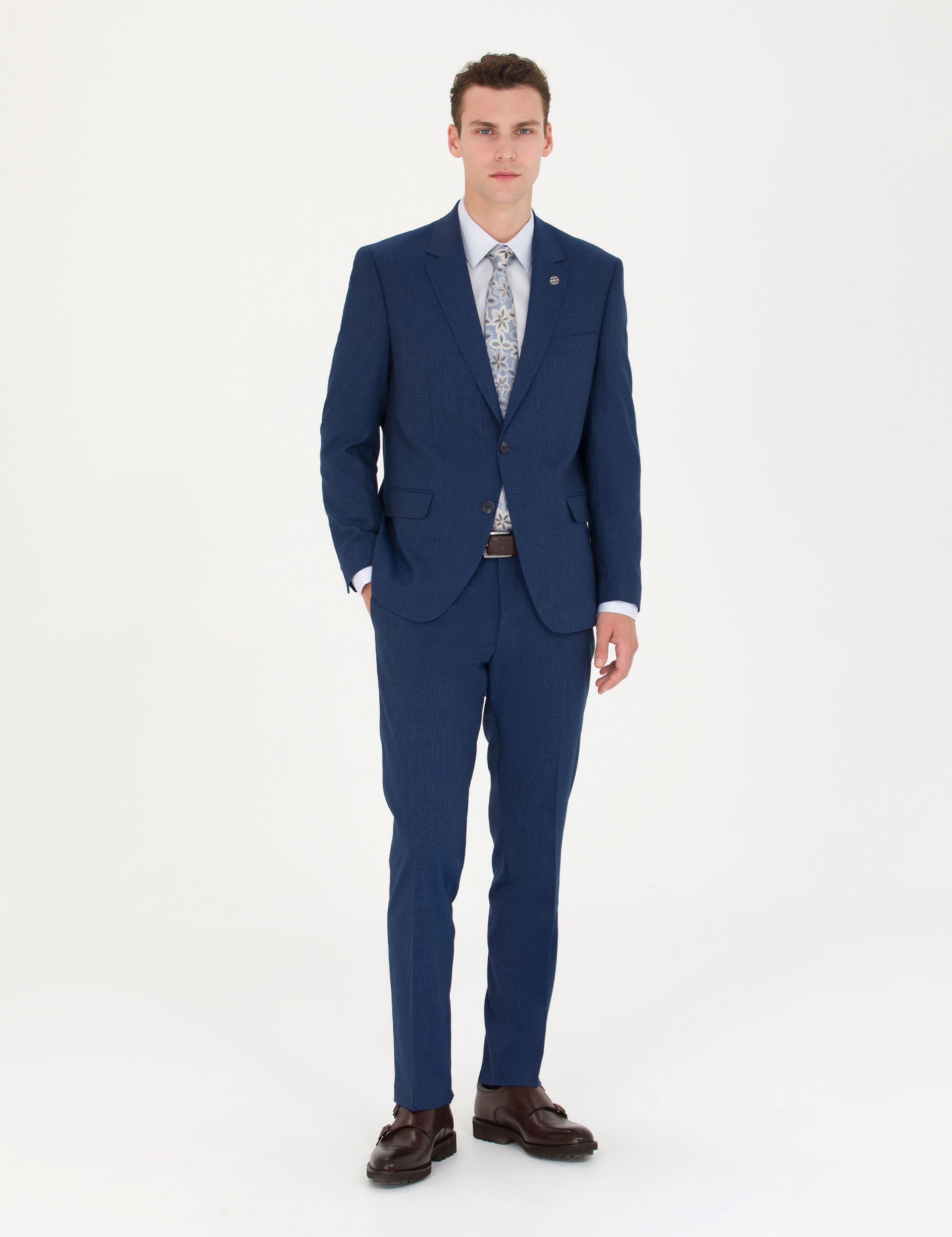 İndigo Çizgi Detaylı Takım Elbise