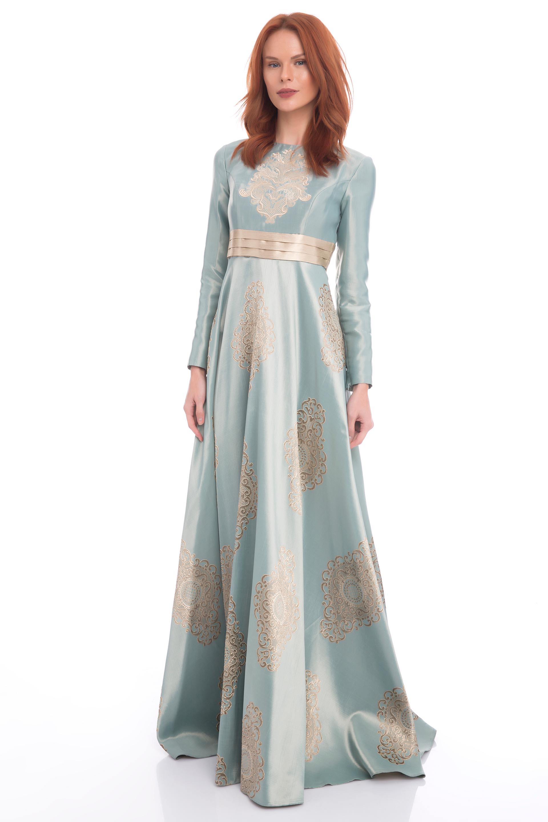 - Kol Boyu Uzun Abiye Elbise
