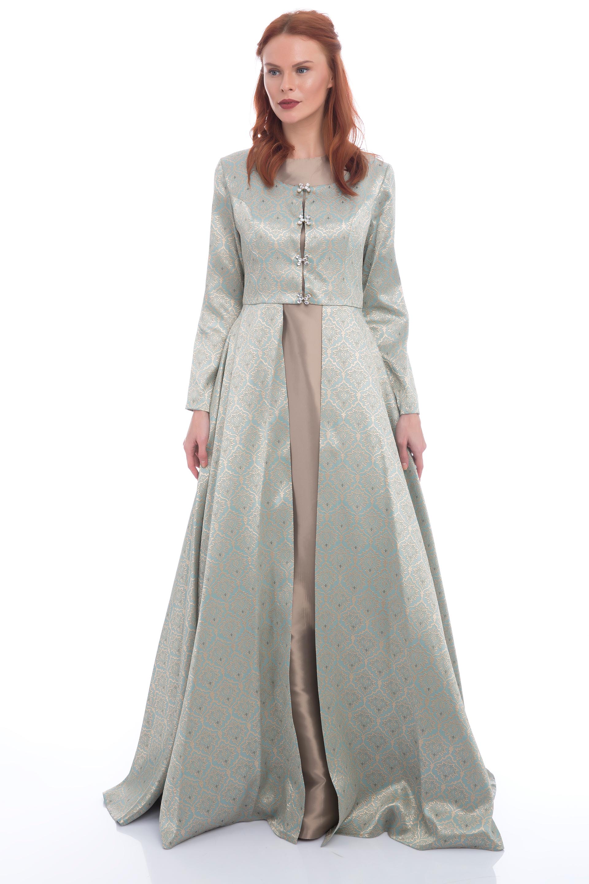 - Kol Boyu Kabarık Abiye Elbise