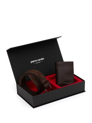Klasik giyime uygun tasarlanmış kemeri, yumuşak doku cüzdan ile birleştirerek Pierre Cardin set kutularını hazırladık.