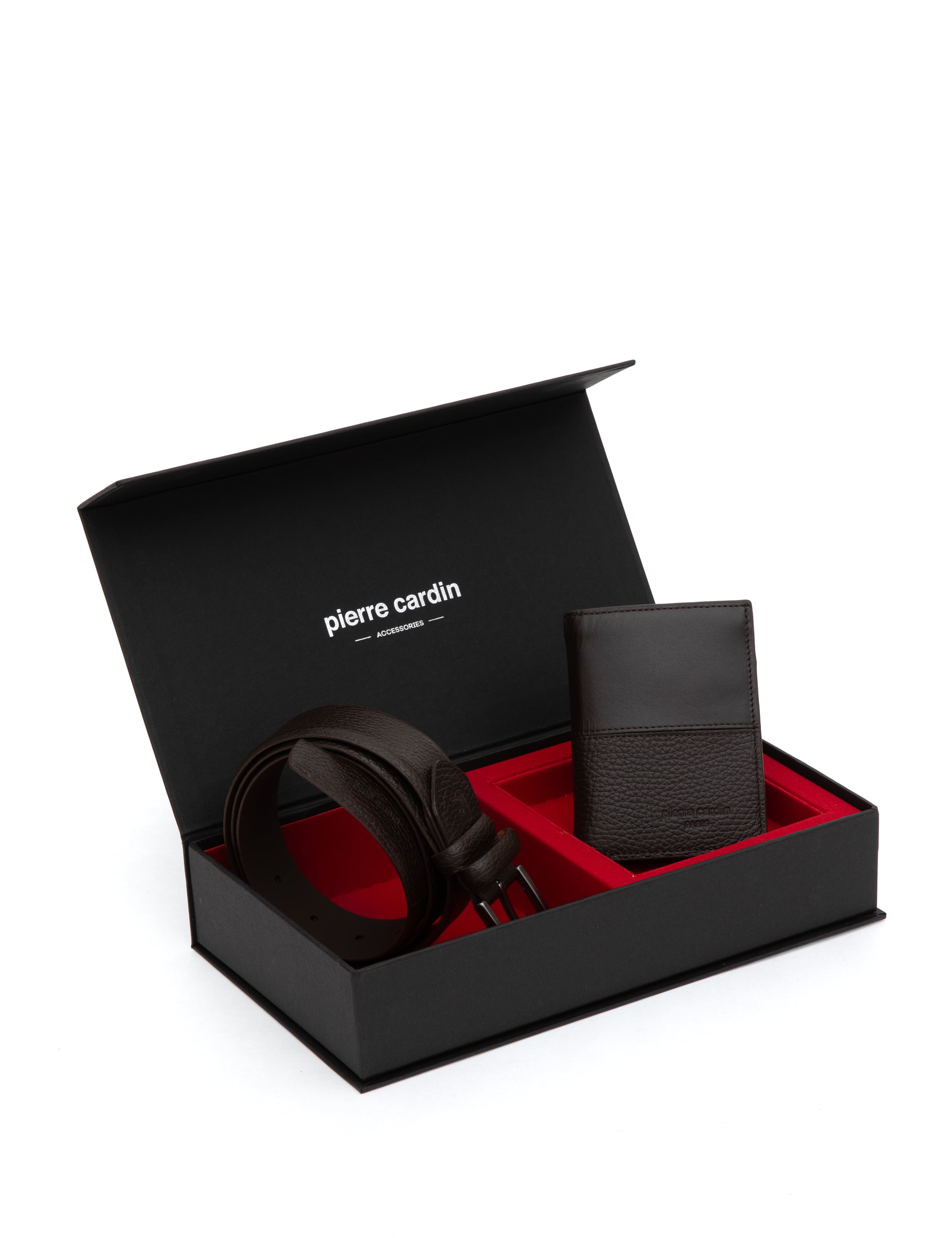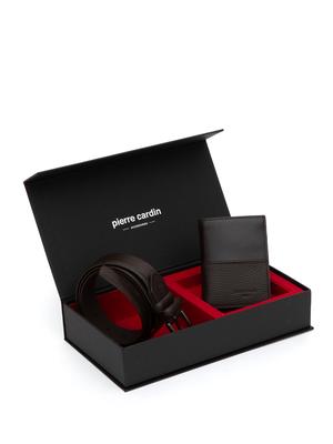 Klasik giyime uygun tasarlanmış kemeri, yumuşak doku cüzdan ile birleştirerek Pierre Cardin set kutularını hazırladık.