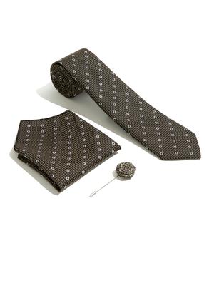Kahverengi 3'lü Kravat-Mendil-Kravat İğnesi Set