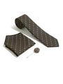 - Kahverengi 3'lü Kravat-Mendil-Kravat İğnesi Set