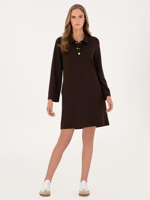 Kahverengi A Kesim Modal Karışımlı Örme Elbise