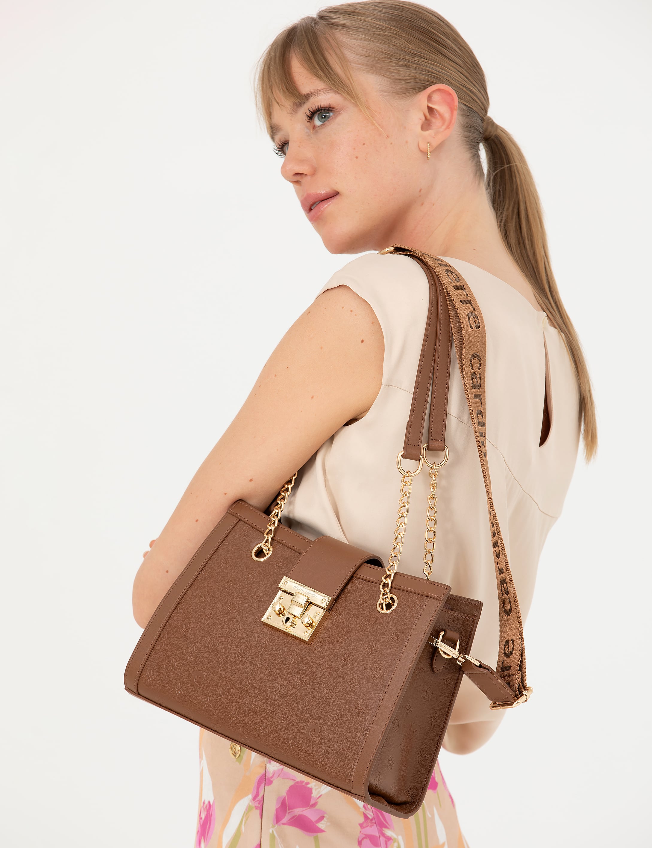 Çıkarılabilir ve zincir detaylı omuz askısı mevcuttur.; Genişlik x Yükseklik x Derinlik: 27x19x8 cm'dir.; Fermuarlı ve kilitli kapama özelliğine sahiptir.; İçerisinde 1 adet fermuarlı iç cep bulunmaktadır.; Telefon vb. eşyaları koymak için 1 adet fermuarsız iç cep bulunmaktadır.; Suni deri malzemeden üretilmiştir.; Pierre Cardin yazılı özel saklama kılıfı çanta içerisinde mevcuttur.; 2 yıl garantilidir.; Türkiye'de üretilmiştir.