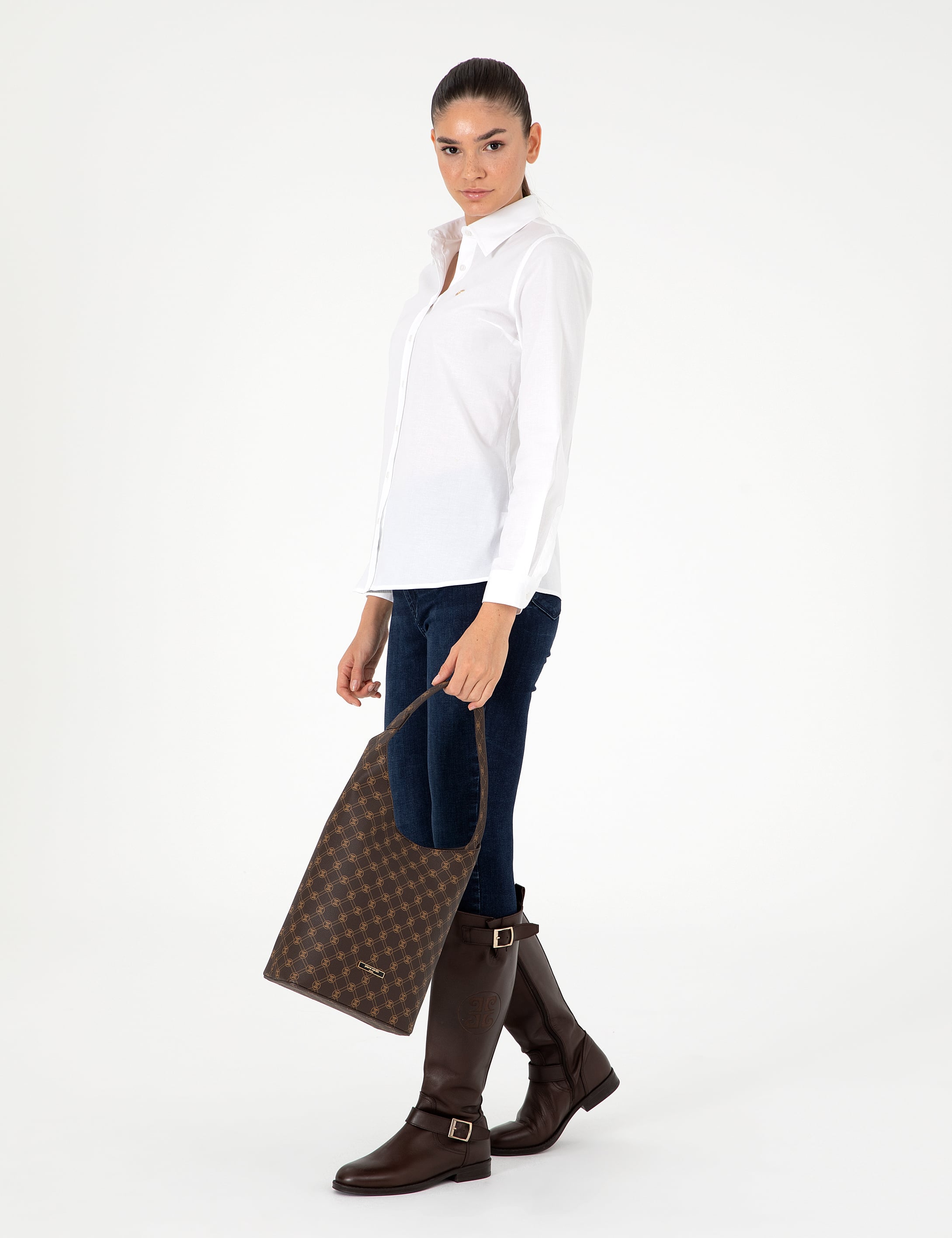 Genişlik x Yükseklik x Derinlik: 21x27x10 cm'dir. Tek gözlü, içeride fermuarlı cep ile 4 kademeli kartlık yeri mevcuttur.