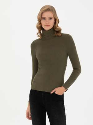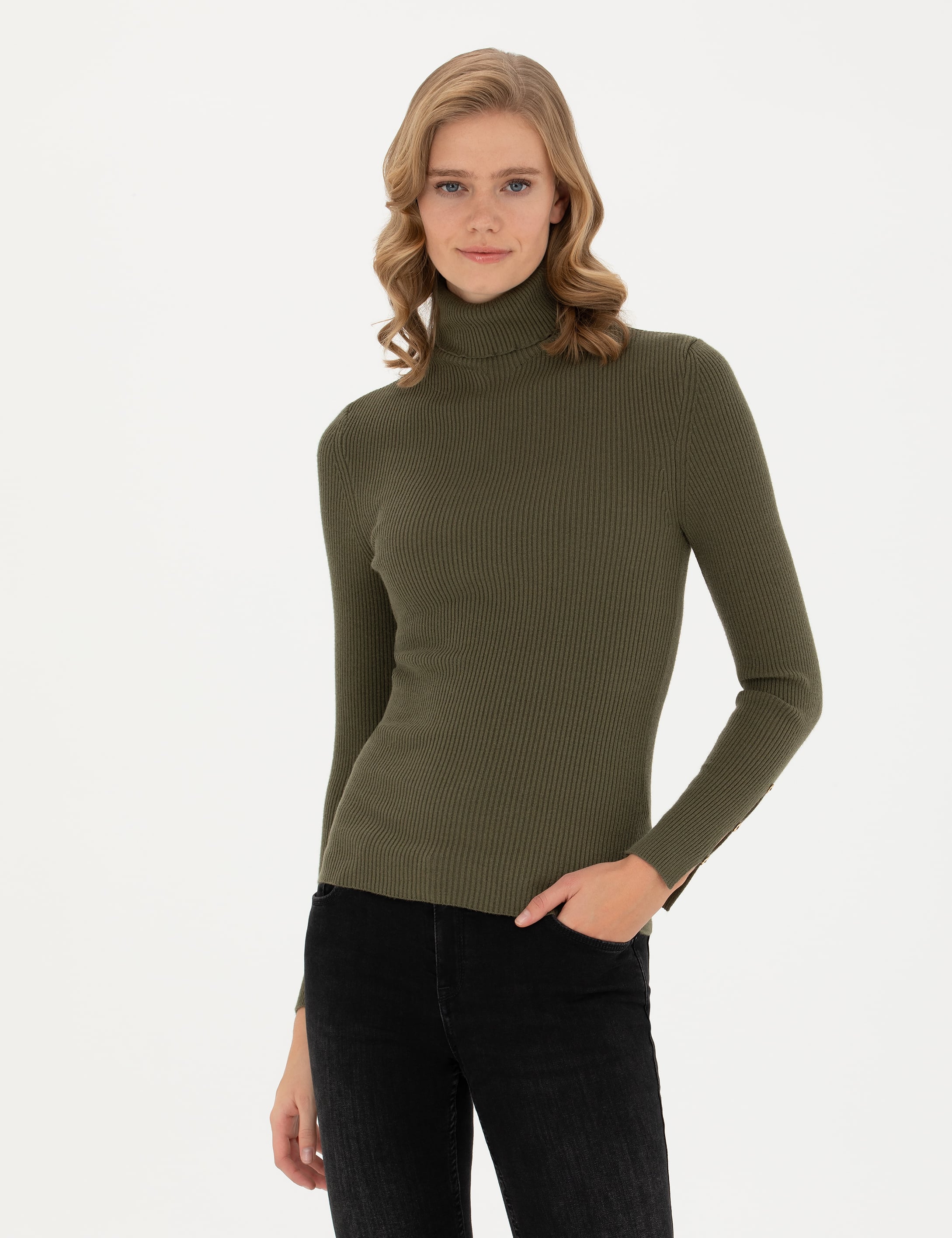 Haki Ekstra Slim Fit Balıkçı Yaka Triko Kazak