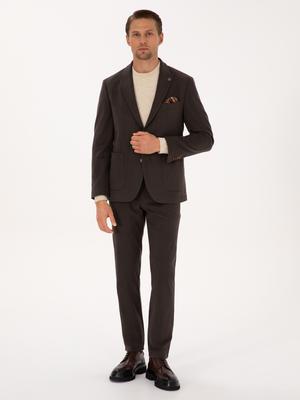 Kahverengi Slim Fit Flanel Dokulu Kumaş Pantolon