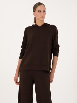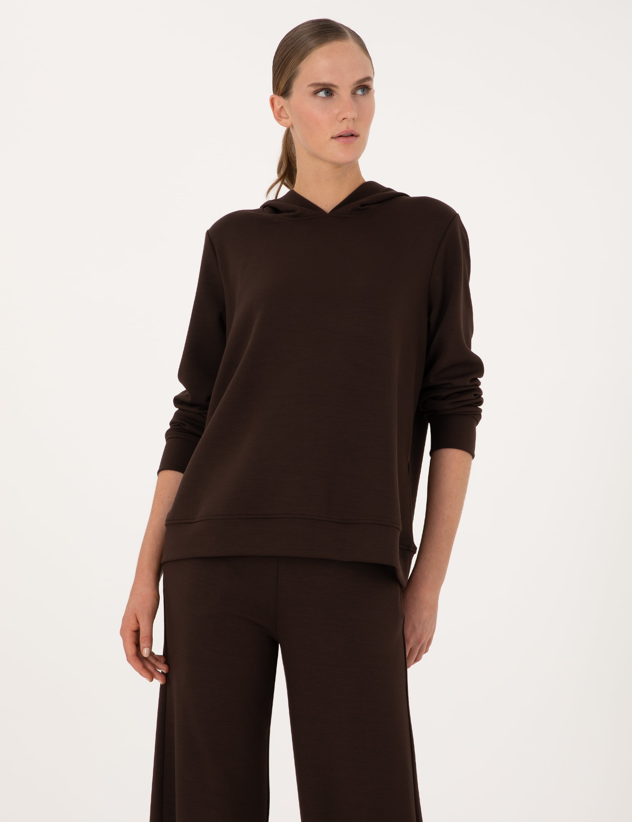 Kahverengi Oversize Modal Karışımlı Kapüşonlu Sweatshirt