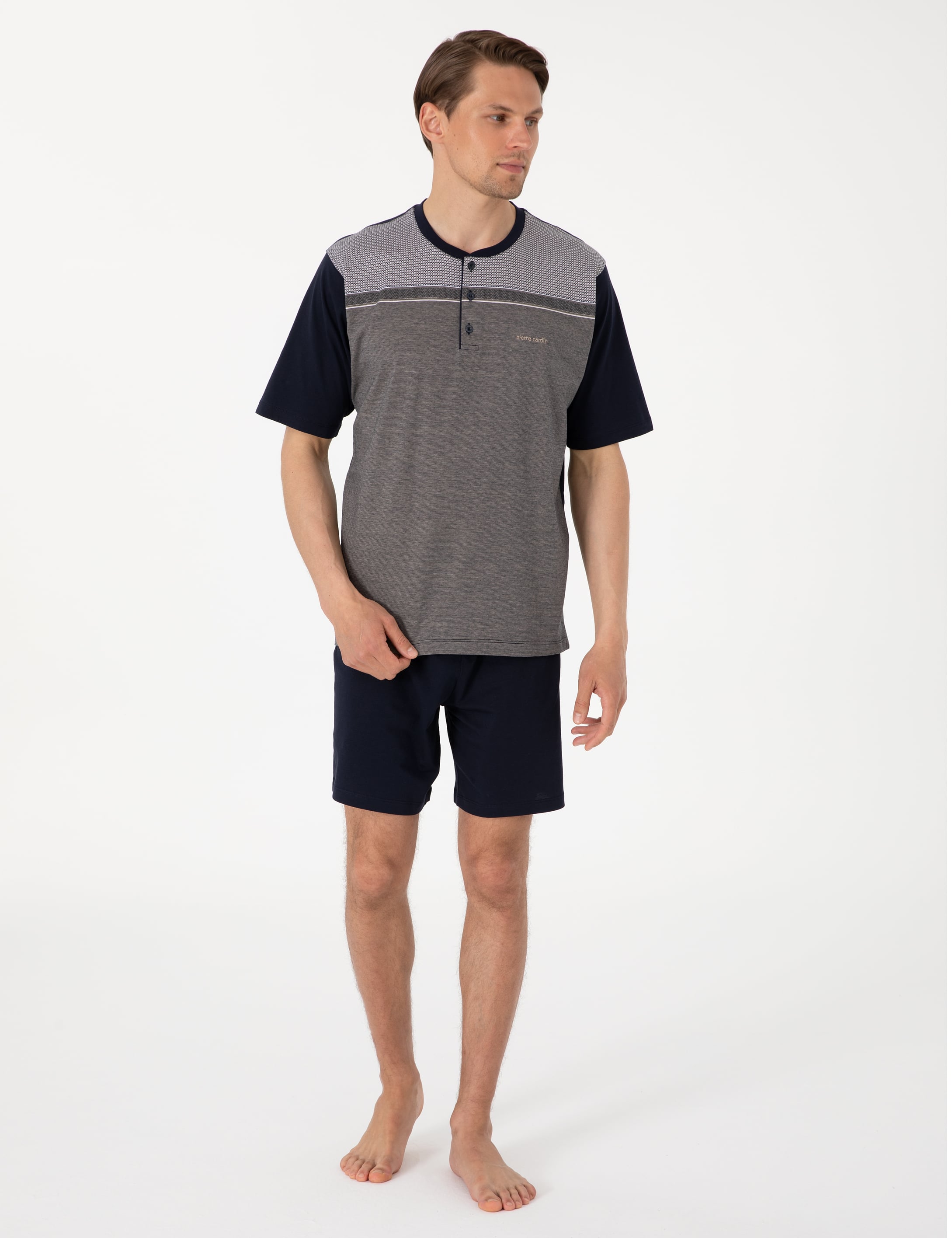 Kahverengi Kısakol Jakarlı Pijama Takımı, zamansız şıklığı ve günlük konforu buluşturan bir tasarıma sahip. Göğüs kısmındaki zarif desen geçişleri ve modern çizgileriyle dikkat çeken üst parça, bisiklet yaka detayı ve kısa kollu formuyla rahatlığı ön plana çıkarıyor. Takımın tamamı %100 pamuk kumaştan üretilerek cilt dostu bir deneyim sunarken, terletmeyen yapısıyla gün boyu serinlik hissi verir. Gövde üzerinde yer alan Pierre Cardin marka detayı ürüne zarif bir karakter kazandırıyor. Evde geçirilen sade anlara stil katan bu pijama takımı, konforlu kesimi ve soft renk geçişleriyle ideal bir tercih haline geliyor.