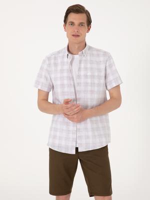 Kahverengi Regular Fit Kısa Kollu Ekose Gömlek