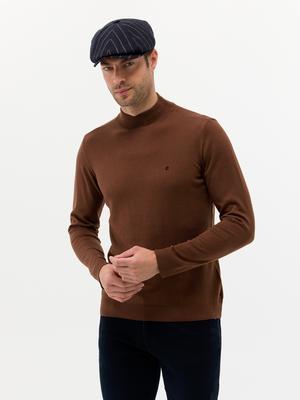 Kahverengi Slim Fit Yarım Balıkçı Yaka Basic Triko Kazak