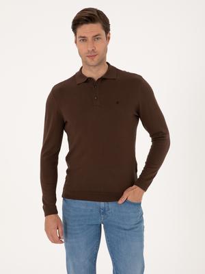 Kahverengi Slim Fit Polo Yaka Basic Triko Kazak