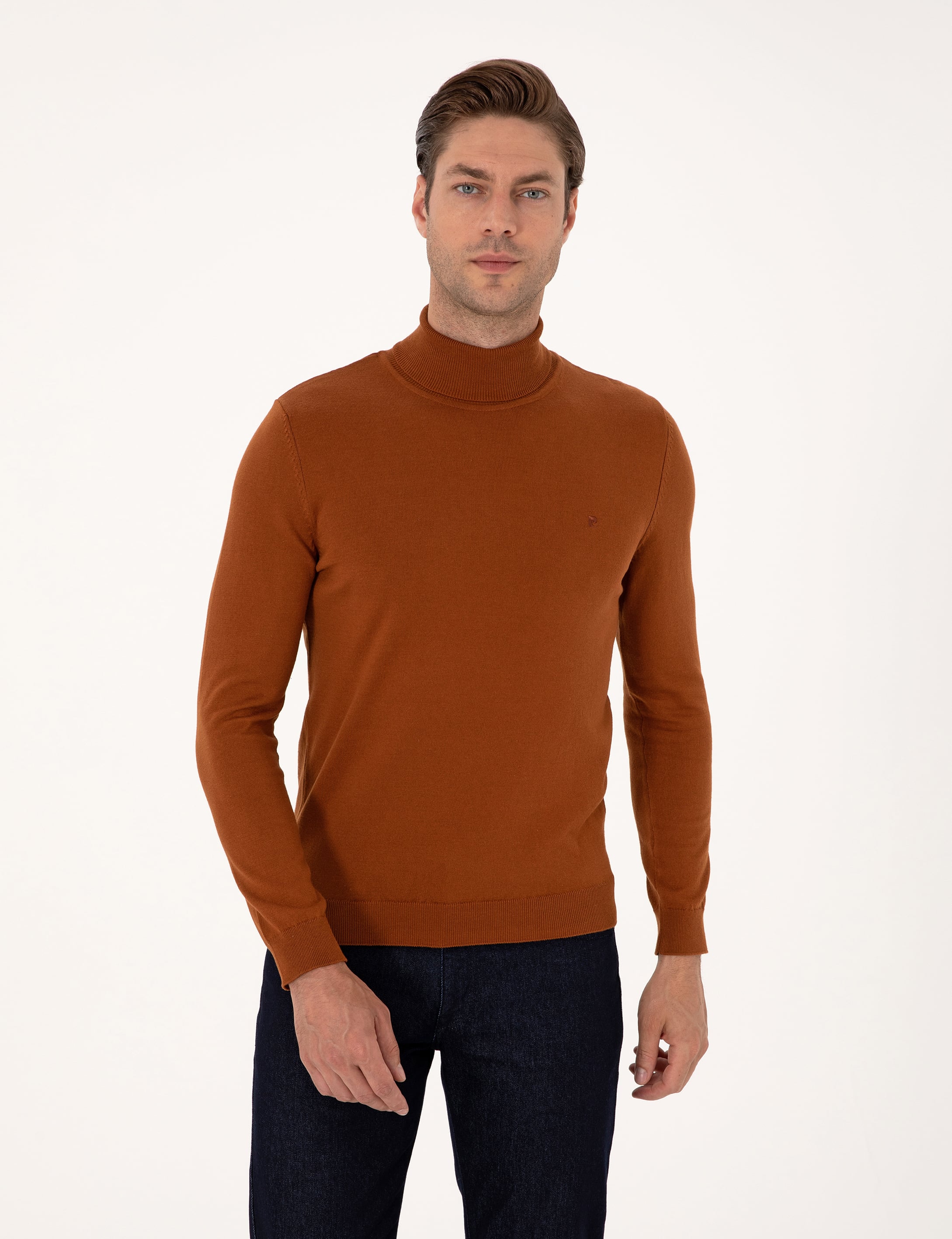Sıcak ve karakterli pas rengiyle öne çıkan bu triko kazak, balıkçı yaka tasarımı sayesinde boyun bölgesinde tam koruma sağlar ve soğuk havalarda ekstra konfor sunar. Slim fit kalıbı vücuda uyum sağlayarak düzenli ve şık bir görünüm kazandırır. Yumuşak dokulu, kaliteli triko kumaşı cilde hoş bir his verirken, dayanıklı iplik yapısı formunu uzun süre korur. Balıkçı yakanın zarif ve klasik duruşu, bu modele sofistike bir hava katar. İnce ama sıcak tutan yapısı sayesinde kış aylarında ve soğuk mevsim geçişlerinde rahatlıkla tercih edilebilir. Özenle hazırlanmış dikiş detayları ve pürüzsüz yüzeyi, hem estetik hem de fonksiyonel açıdan üstün bir kalite sunar.
