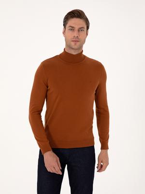 Kahverengi Slim Fit Balıkçı Yaka Basic Triko Kazak