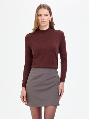 Kahverengi Slim Fit Yarım Balıkçı Yaka Basic Kazak