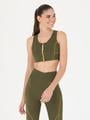 Bambu renkli spor büstiyer, sportif şıklığı ve rahatlığı bir araya getiren bir tasarıma sahiptir. Ön kısmındaki fermuar detayı hem kullanım kolaylığı sağlamakta hem de şık bir görünüm sunmaktadır. Slim fit yapısı vücuda tam oturarak destekleyici bir yapı sunarken, antrenman sırasında hareket özgürlüğü sağlamaktadır. Ürün, hem spor salonunda hem de açık hava aktivitelerinde rahatlıkla kullanılabilir. Kumaşının esnek yapısı, gün boyu rahatlık sunarak antrenman sırasında terlemeyi minimuma indirir.