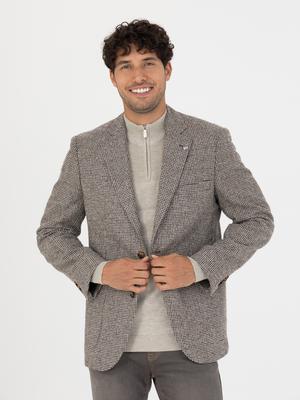 Kahverengi Slim Fit Yün Karışımlı Ceket