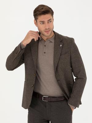 Kahverengi Yün Karışımlı Slim Fit Ceket
