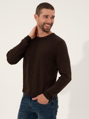 Kahverengi Slim Fit Bisiklet Yaka Triko Kazak
