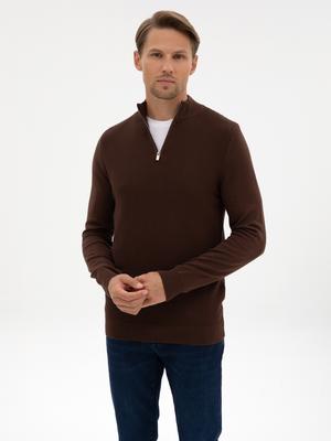 - Kahverengi Slim Fit Dik Yaka Fermuarlı Triko Kazak