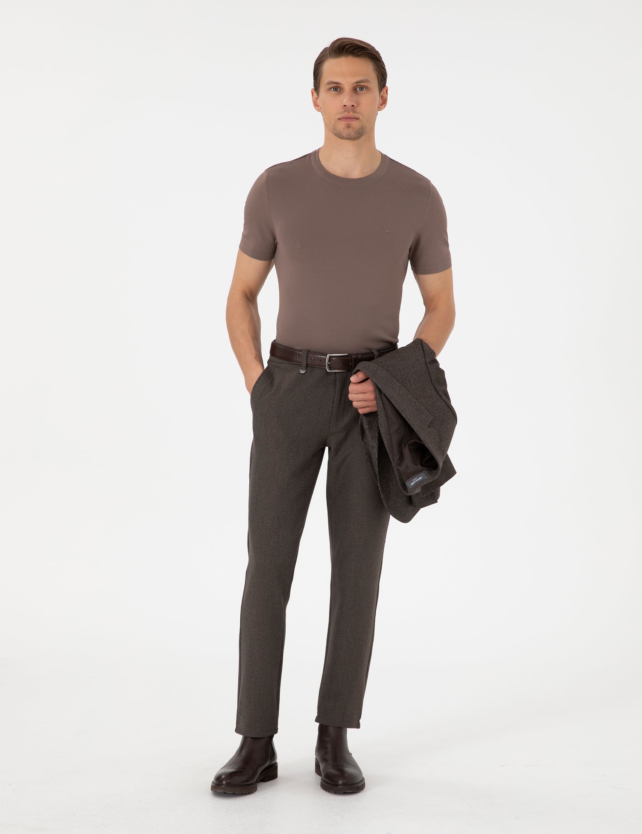 - Kahverengi Slim Fit Kumaş Pantolon