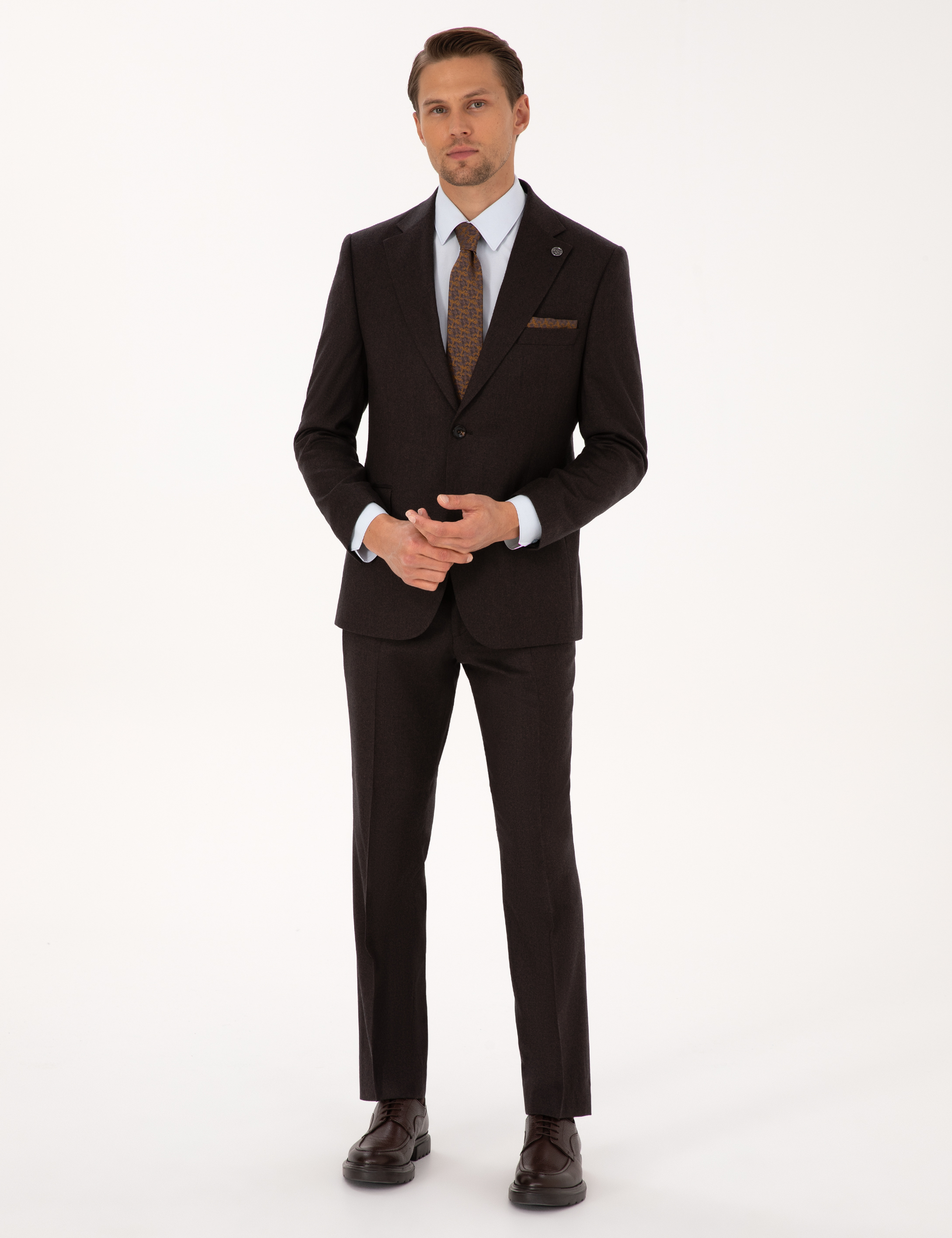 - Kahverengi Slim Fit %100 Yün Takım Elbise