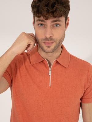 - Kahverengi Slim Fit Fermuarlı Polo Yaka Tişört