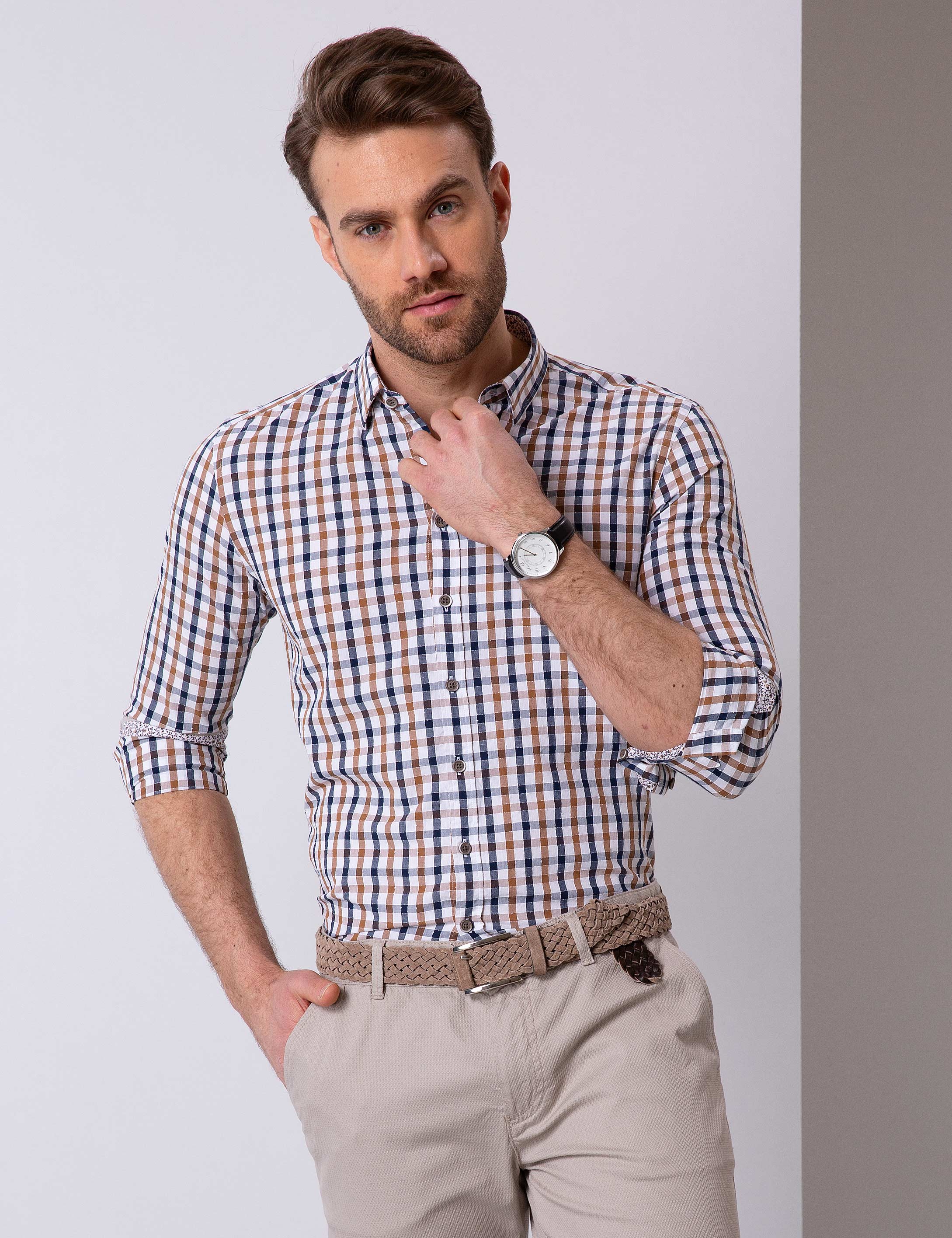 - Kahverengi Slim Fit Uzun Kollu Gömlek