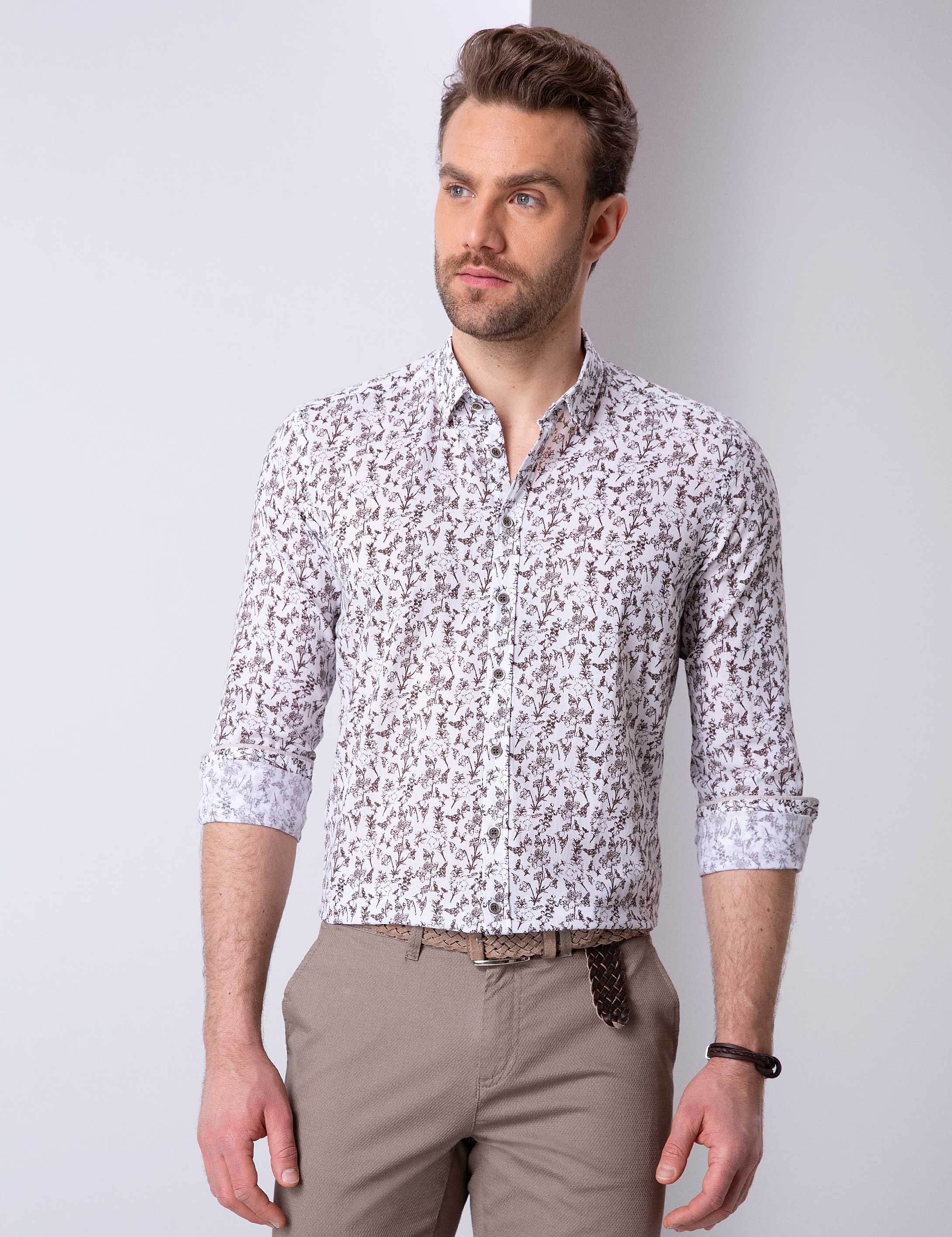 Kahverengi Slim Fit Uzun Kollu Gömlek