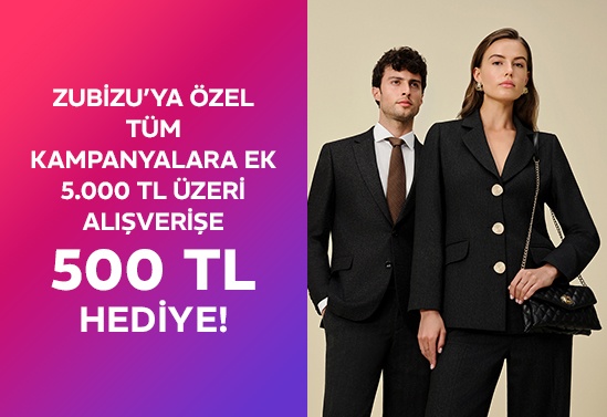 •01-31 Ocak 2026 tarihleri arasında Pierre Cardin mağazaları ve pierrecardin.com.tr'de ZUBIZU müşterilerine özel tüm alışverişlerde tüm indirimlerin sonunda 5.000 TL ve üzerine ekstra 500 TL indirim uygulanacaktır.