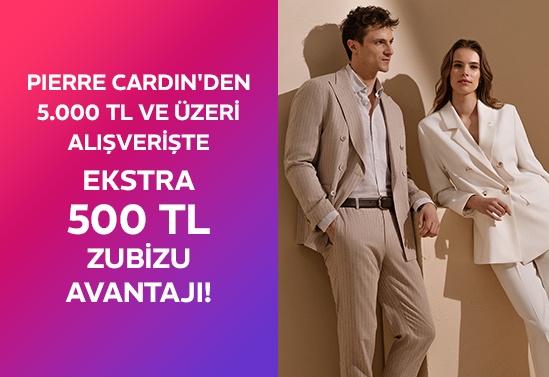•01-30 Nisan 2026 tarihleri arasında Pierre Cardin mağazaları ve pierrecardin.com.tr'de ZUBIZU müşterilerine özel tüm alışverişlerde tüm indirimlerin sonunda 5.000 TL ve üzerine ekstra 500 TL indirim uygulanacaktır.