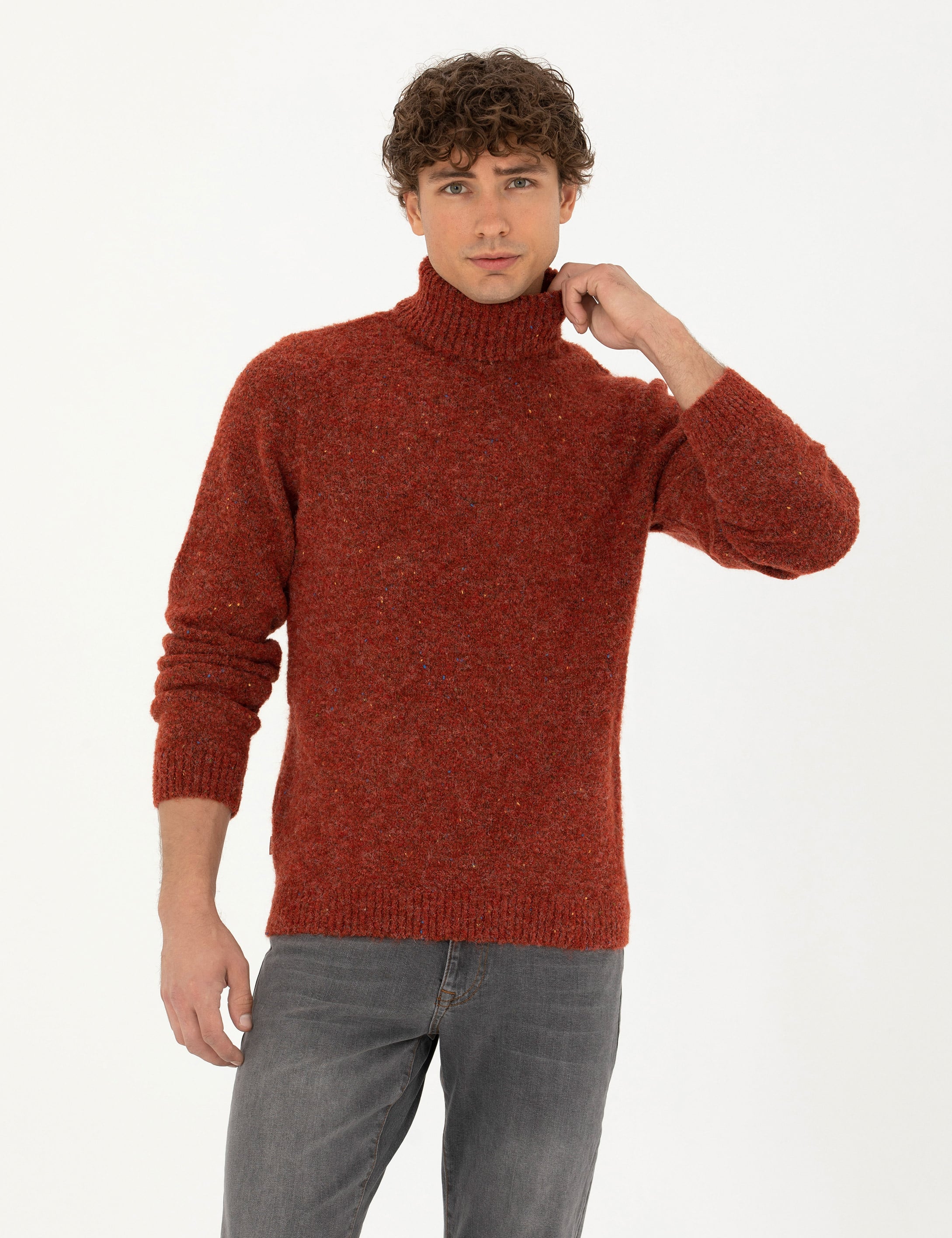 Kiremit Regular Fit Balıkçı Yaka Yün Karışımlı Triko Kazak