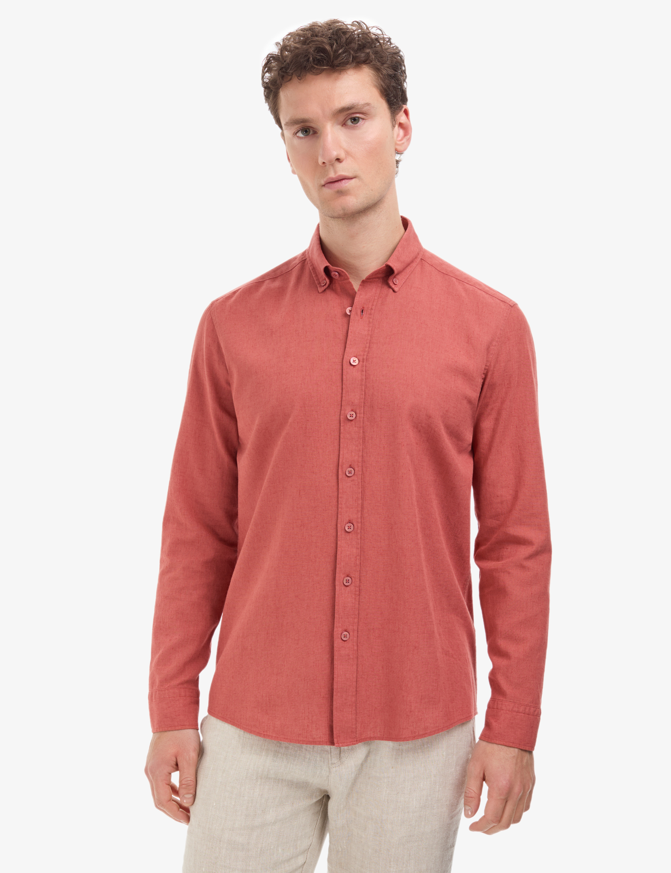 Kiremit Keten Karışımlı Regular Fit Uzun Kollu Gömlek