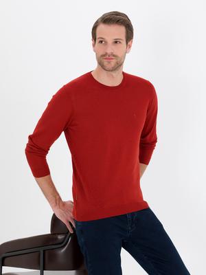 Kiremit Slim Fit Bisiklet Yaka Yün Karışımlı Basic Triko Kazak