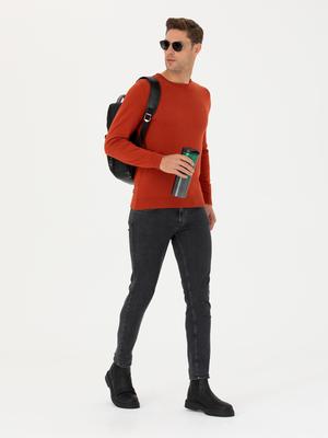Kiremit Slim Fit Bisiklet Yaka Basic Triko Kazak