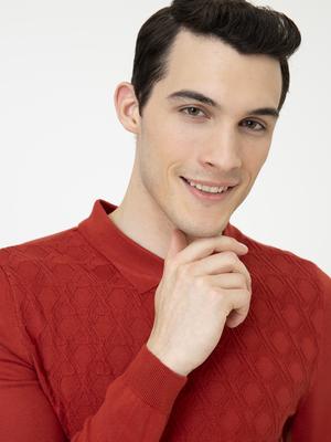- Kiremit Slim Fit Düğmeli Polo Yaka Triko Kazak