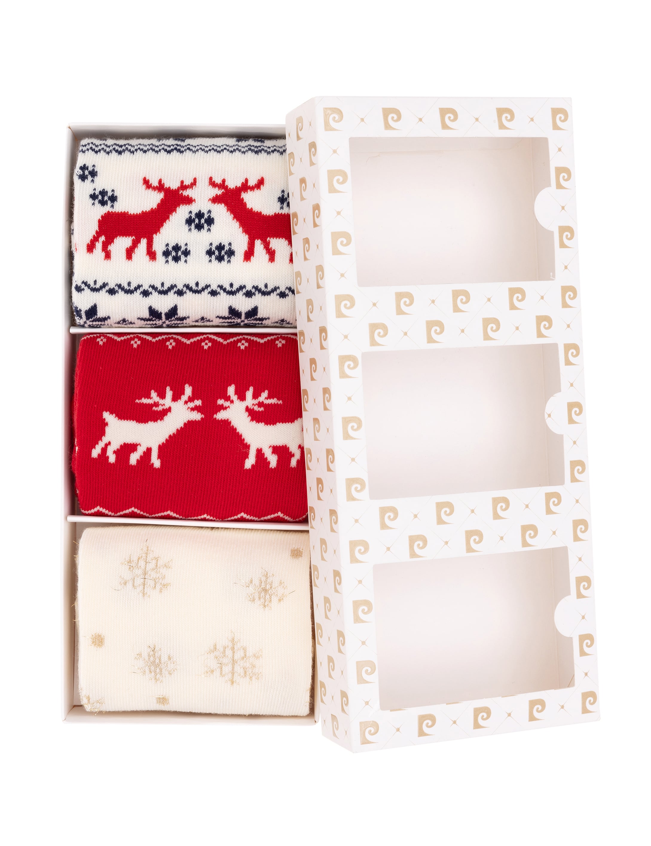 Kadın Kutulu Kırmızı 3'lü Yılbaşı Çorabı