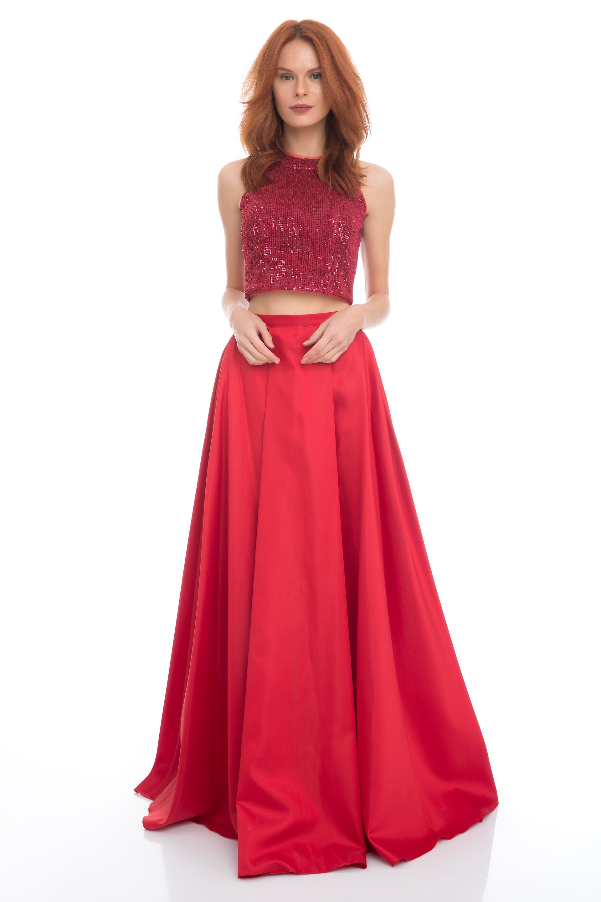 KIRMIZI İkili Takım Balık Abiye Elbise