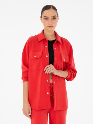 - Kırmızı Oversize Modal Kumaş Örme Hırka