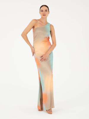 Kırmızı Desenli Regular Fit Tek Omuz Elbise
