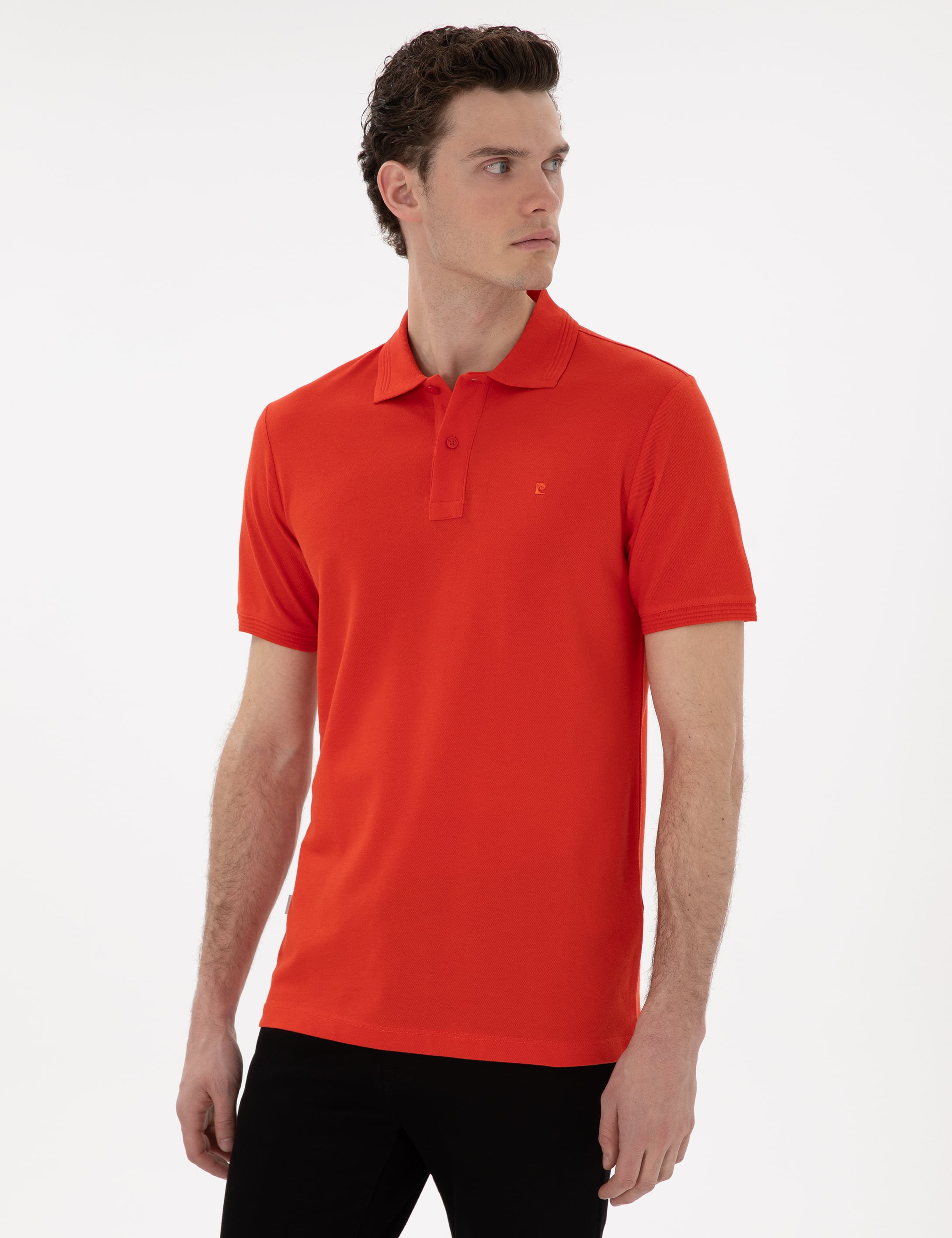 Kırmızı Slim Fit Kıvrılmaz Polo Yaka Basic Tişört