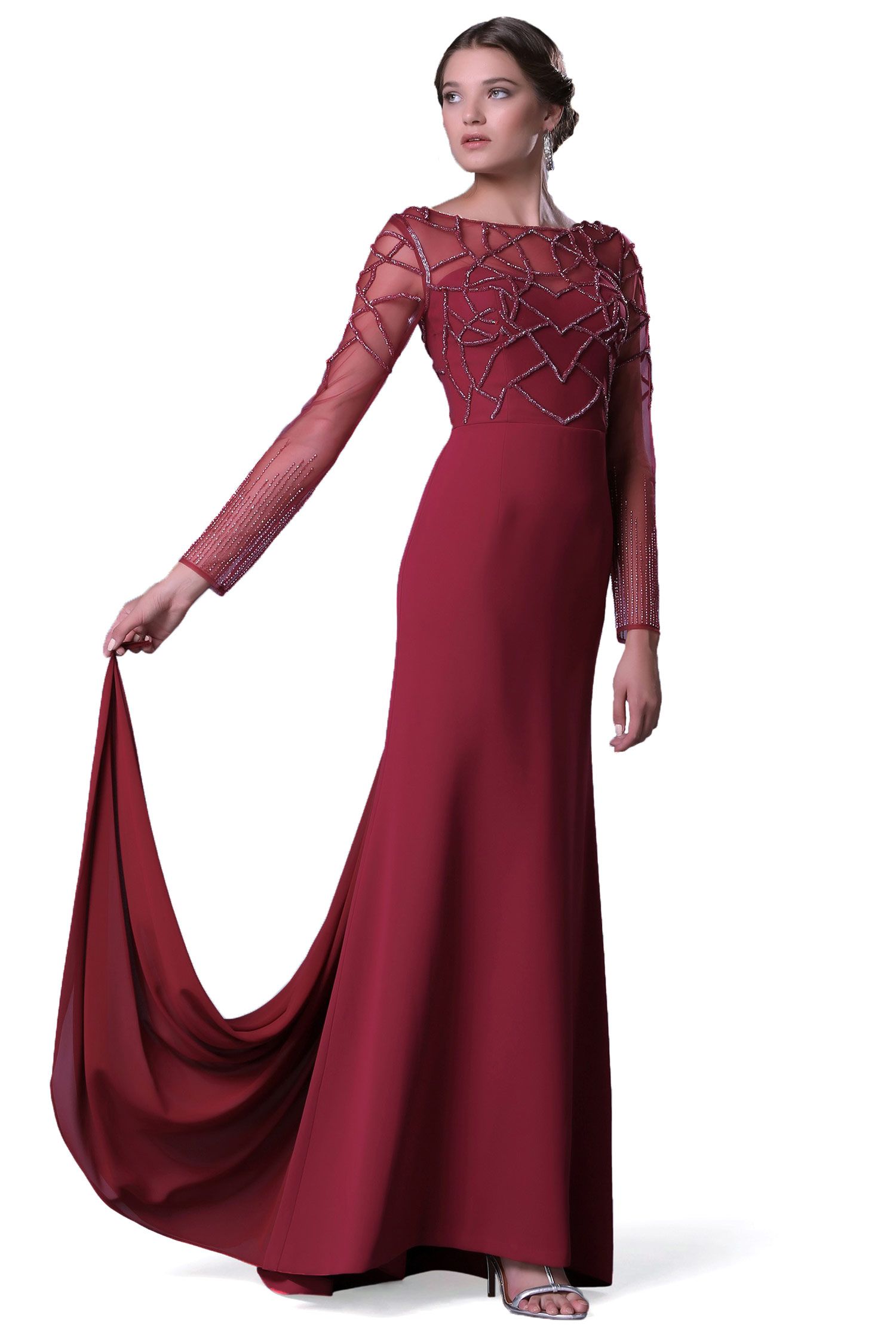 - Kol Boyu Uzun Abiye Elbise