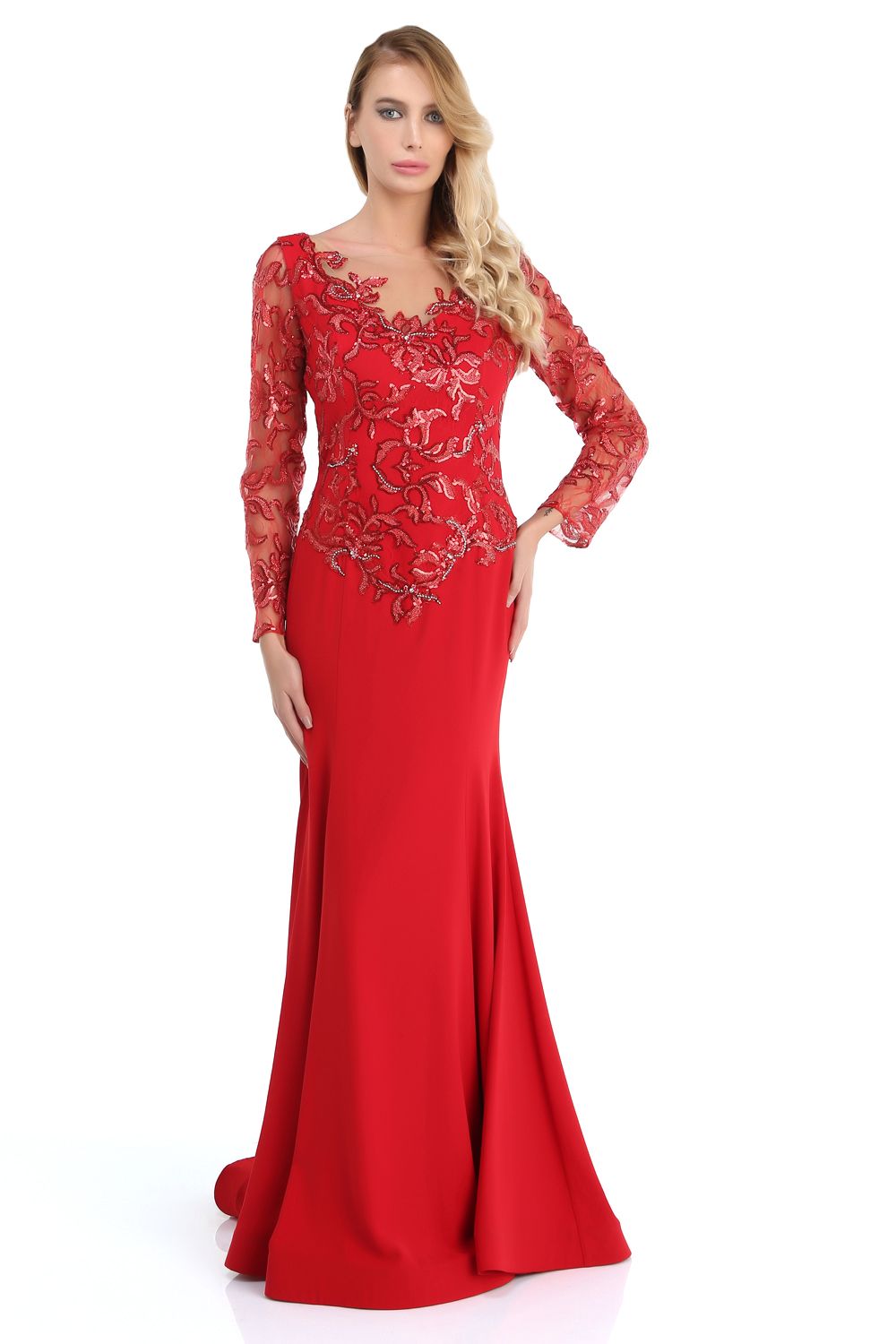 KIRMIZI Uzun Abiye Elbise