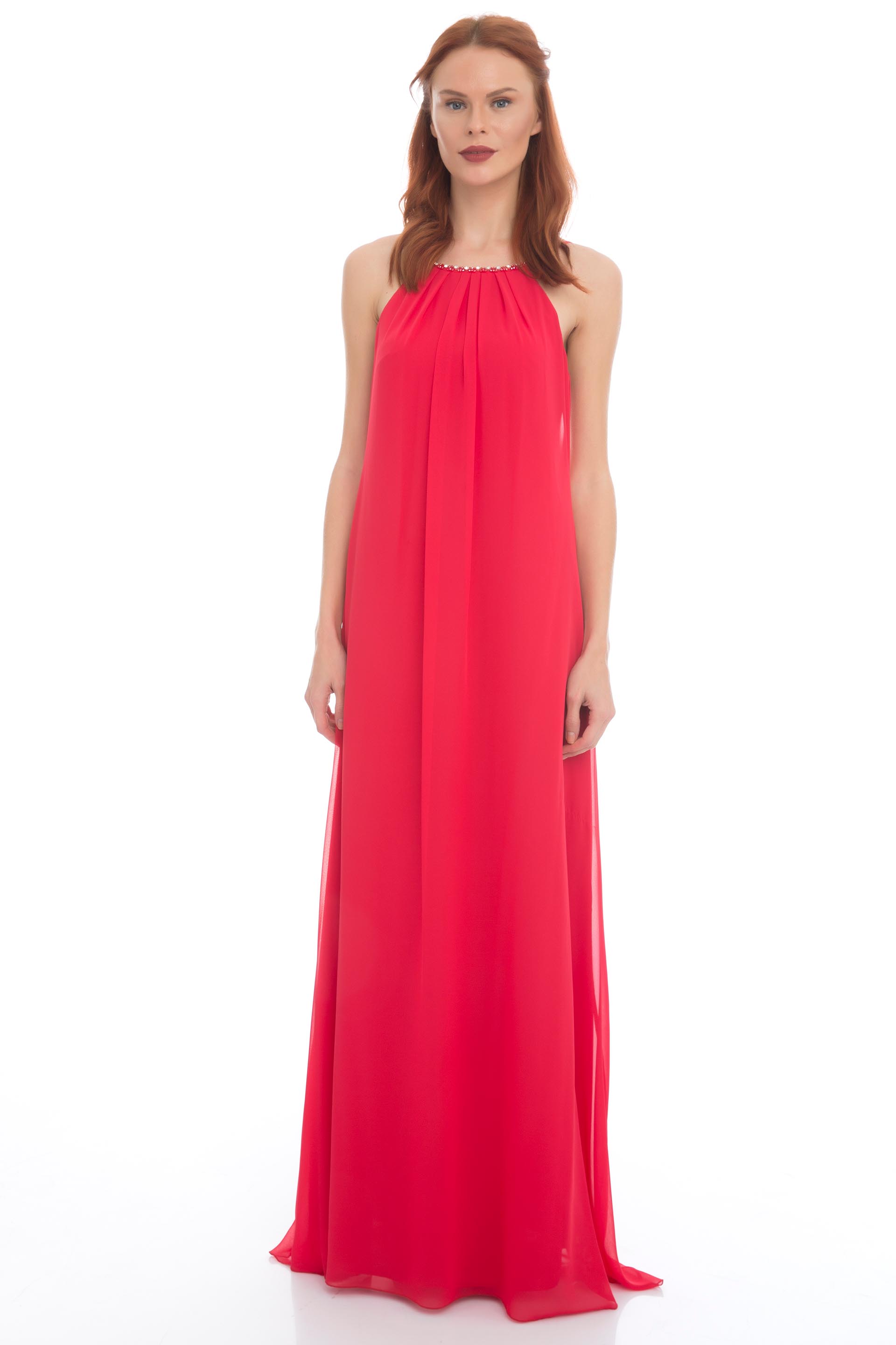 KIRMIZI Uzun Abiye Elbise